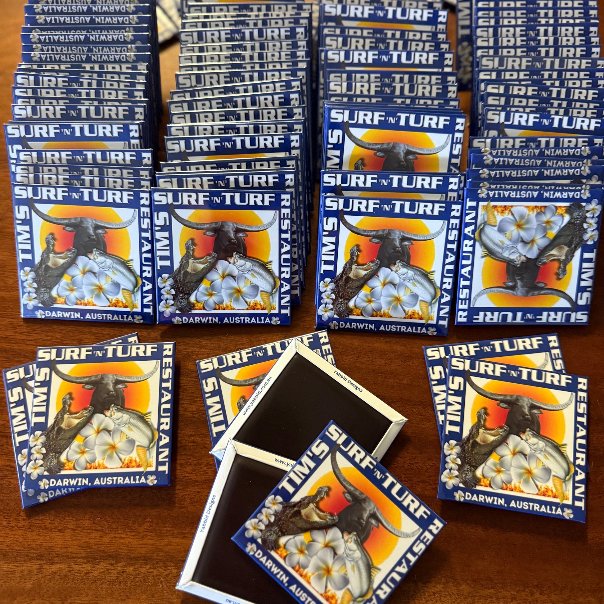 Make your brand unmissable with our 63.5x 63.5mm logo magnets! Whether you’re a sparkie, chippy, barista or baker—make sure your name sticks around with our logo magnets! Perfect for handing out to customers, popping in with orders, or leaving at the counter. They’re high quality, long lasting, and proudly made right here in Darwin, NT.